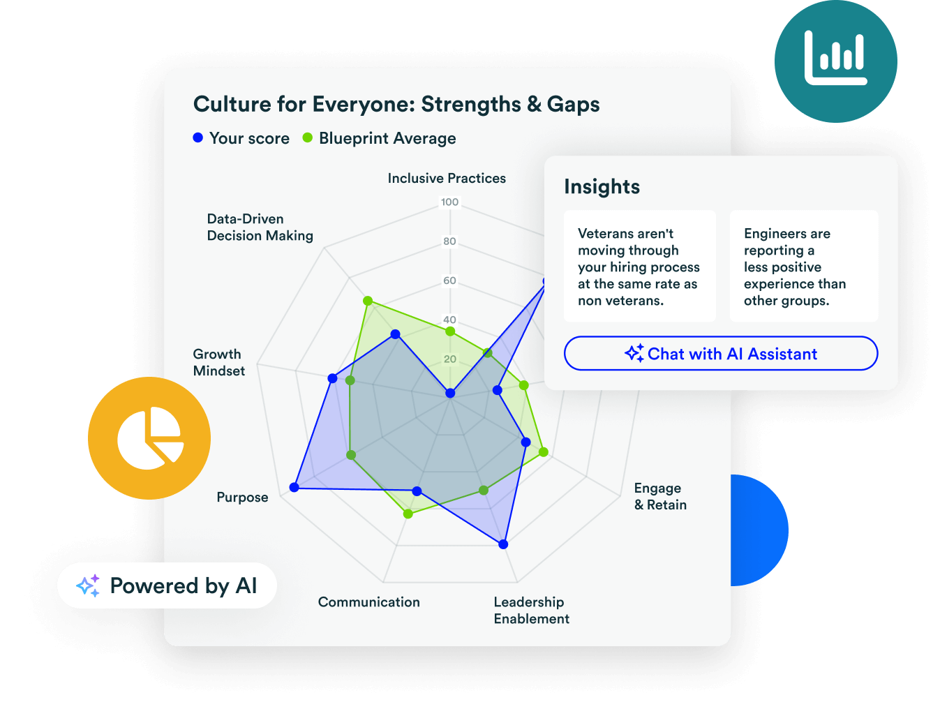 Learn About AI AssistantAI-powered analysis uncovers evolving workplace culture and inclusion trends, delivering real-time insights that adapt alongside your data. Stay ahead of changes in your own data and track broader industry benchmarks.