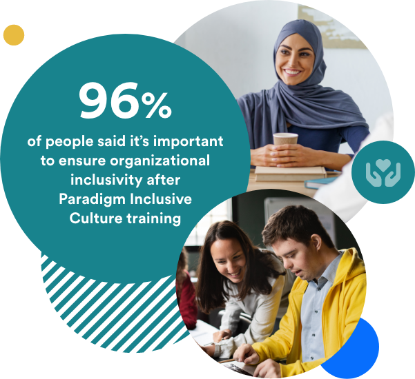 After a Paradigm Inclusive Culture training, there is a 96% of people said it’s important to ensure the organization is inclusive of people from all backgrounds and identities, and there was a 108% increase in learners' understanding of strategies they can use to foster inclusion. Our training will help your employees:
