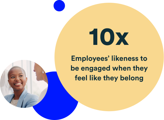 Our analysis of 38,000 employees across 53 organizations found that a higher sense of belonging is strongly correlated with an employee's engagement, sense of purpose in their work, comfort in sharing their ideas, and trust in their employer.