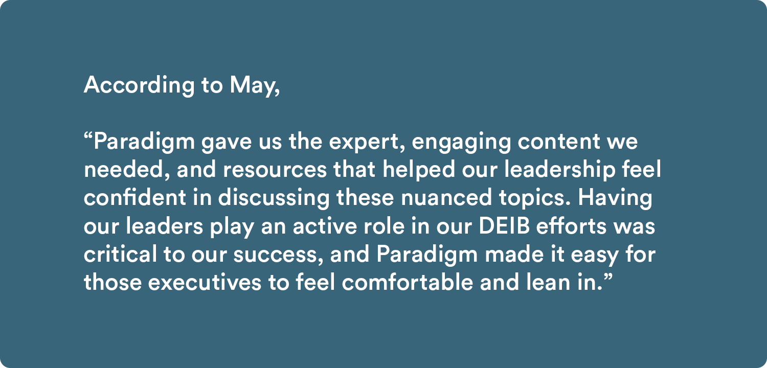 To reach these goals, May evaluated potential partners and determined that Paradigm’s approach to DEIB education, including the wealth of resources combined with a focus on translating learning to action, was the best solution for OCHIN. The organization used the Paradigm Reach blended learning platform as their foundation, building a tailored learning journey for various employee audiences that combined full courses, microlearnings, and downloadable resources.