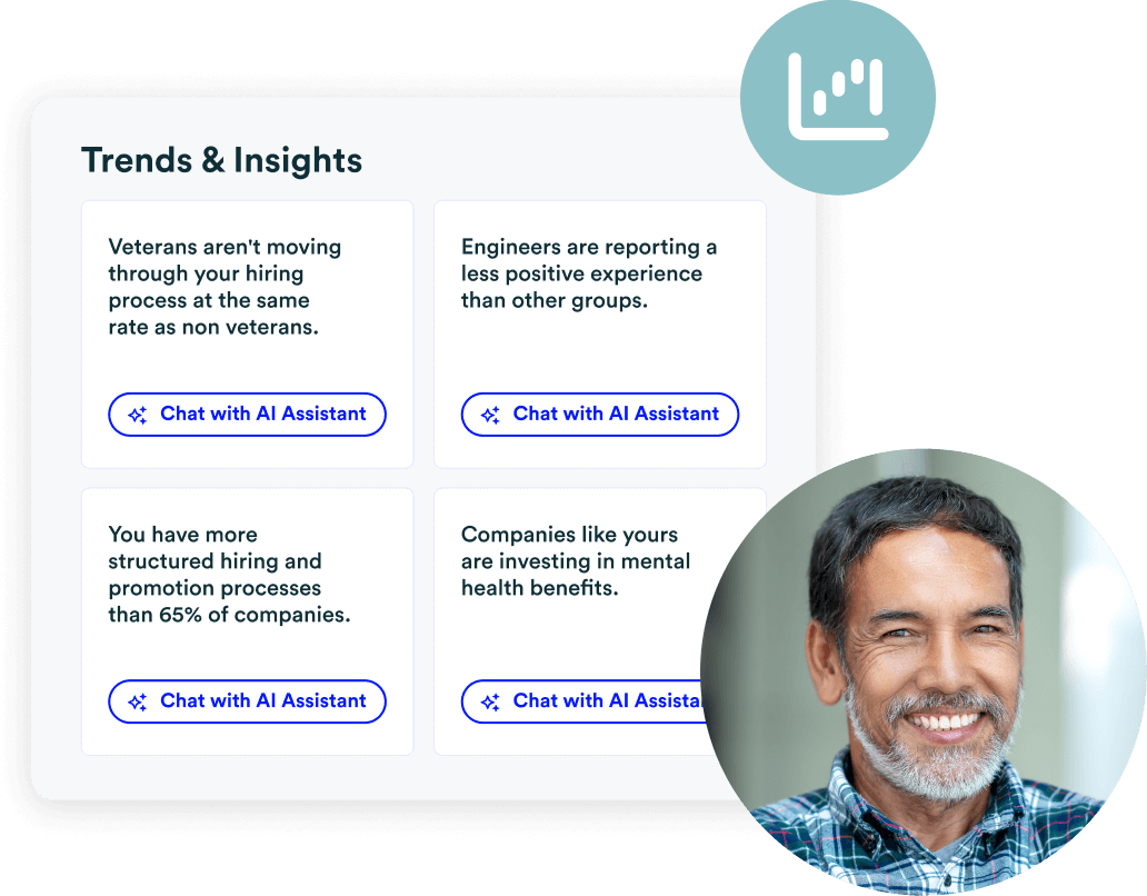Learn About AI AssistantAI-powered analysis uncovers evolving workplace culture and inclusion trends, delivering real-time insights that adapt alongside your data. Stay ahead of changes in your own data and track broader industry benchmarks.