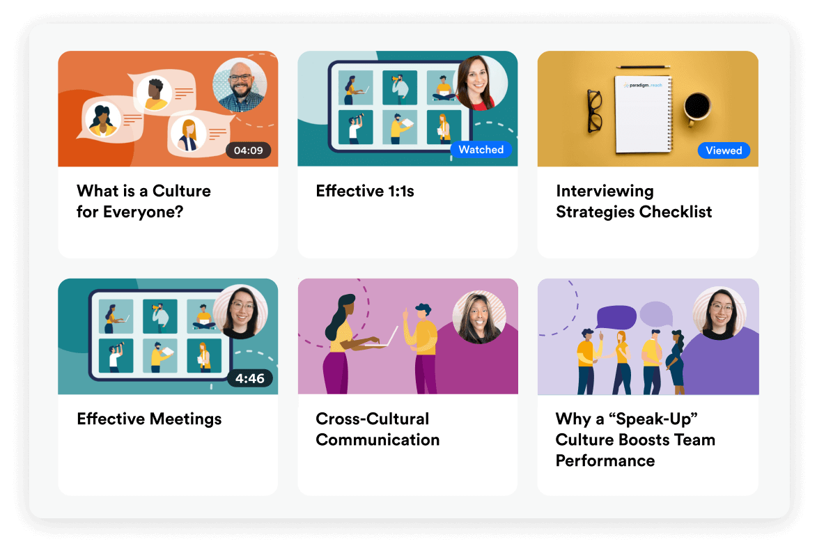 Your culture is shaped by your people. Reach upskills your employees on the topics that matter most: effective management, growth mindset, collaborative meetings, workplace norms, cross-cultural communication, working across generations, and more. And our library is continually growing so content is fresh and relevant.