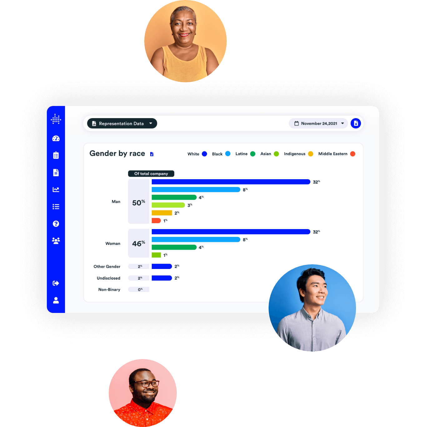 We show you how employees from different identity groups (e.g., race, gender, LGBTQ+) experience the organization through surveys and focus groups.