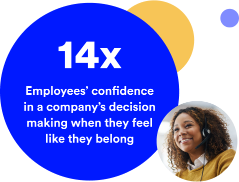 Our analysis of 38,000 employees across 53 organizations found that a higher sense of belonging is strongly correlated with an employee's engagement, sense of purpose in their work, comfort in sharing their ideas, and trust in their employer.